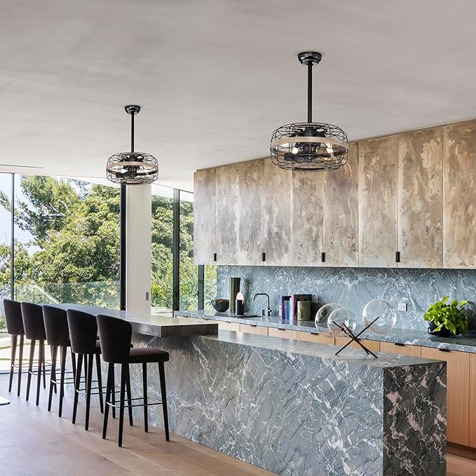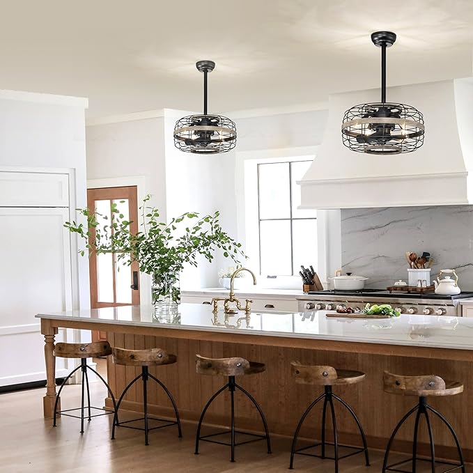 - Small Size: Design of caged ceiling fan with 5 small blades take up less space. Perfectly for small to medium space with low profile ceiling.