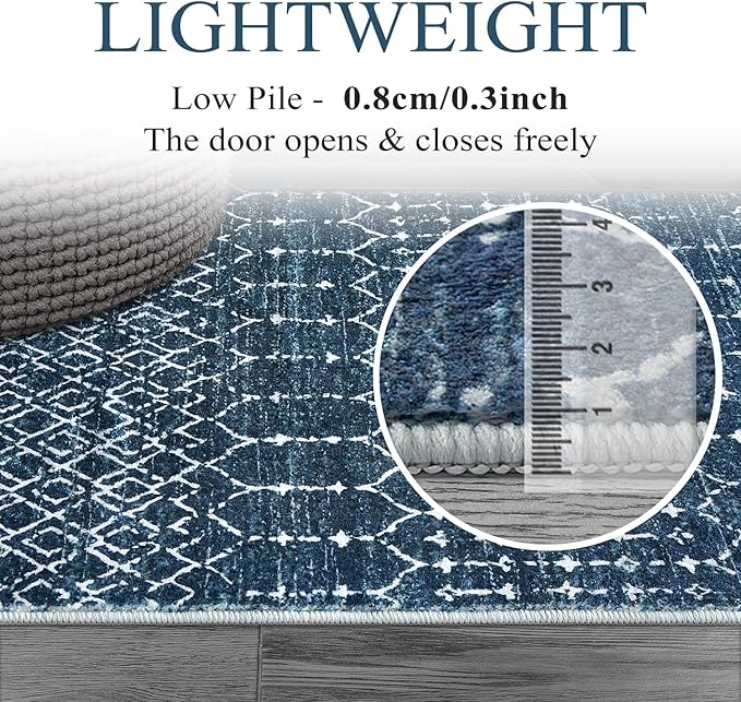 - 【Functional Lightweight Rug】 - Lahome ultra-thin runners are made with everyday use in mind and high-traffic areas. 0.3 inches thickness allows for convenient placement in hallway, ktichen,and entryway. The door opens and closes freely and won't create a tripping hazard