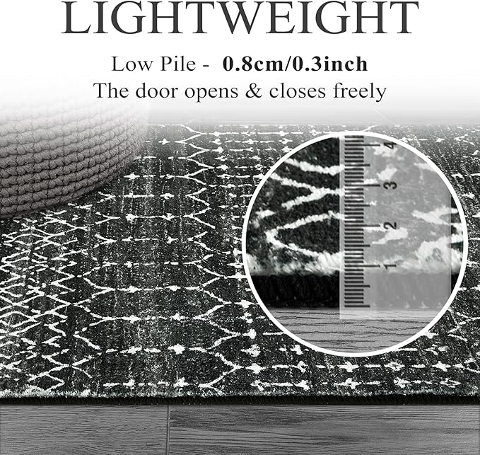 - 【Functional Lightweight Rug】 - Lahome ultra-thin runners are made with everyday use in mind and high-traffic areas. 0.3 inches thickness allows for convenient placement in hallway, ktichen,and entryway. The door opens and closes freely and won't create a tripping hazard