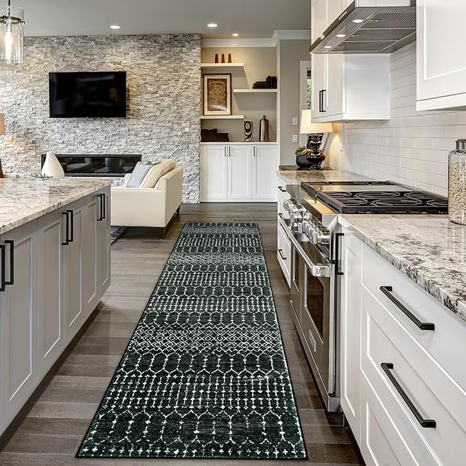- 【Soft & Moroccan Design】:The fabric almost feel like terrycloth and velvety feeling, bringing the ultimate in luxurious softness underfoot. Modern floor runner with geometric designs add an stylish, unique look to the room