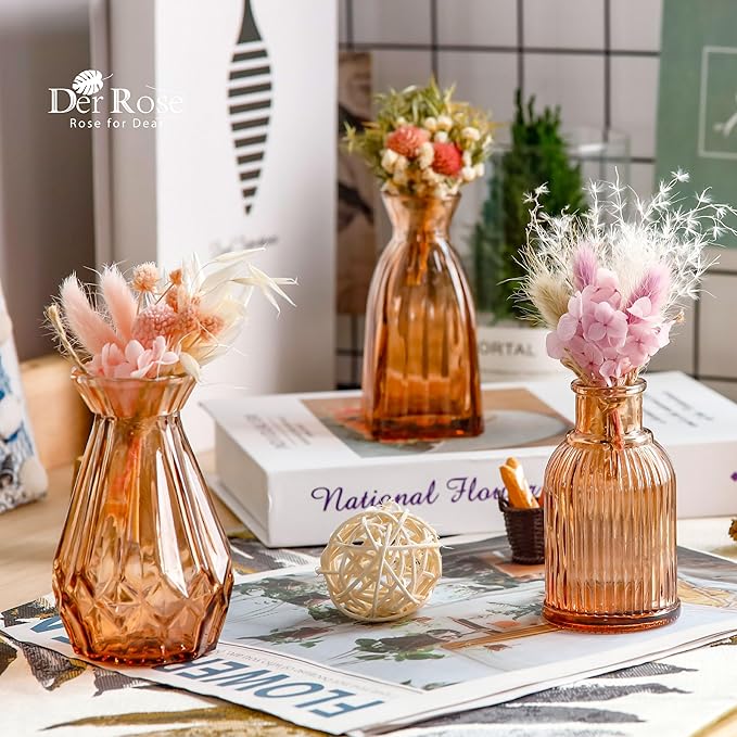 Der Rose Bud Vases in Bulk Glass Vase for Centerpieces Set of 12 Small Flower Vases Mini Vintage Vases for Rustic Wedding, Home Table Decorations (Amber)