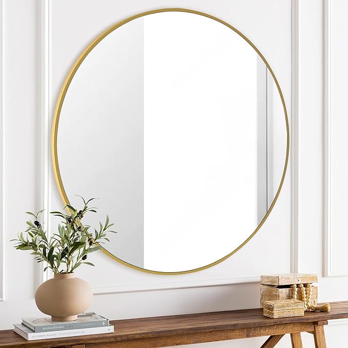CULER Round Gold Bathroom 36 Inch Mirror,Circle Wall Modern Mirror for Bedroom,Hanging Vanity Tempered Glass Mirrors for Entryway or Living Room