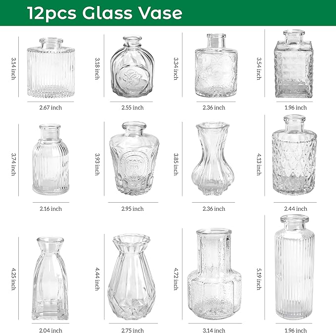 - Vintage Style: You will receive 12 vintage-style glass bud vases that are exquisite and elegant. They can become the beautiful focal point of your windowsill, dining table, or wedding decor
