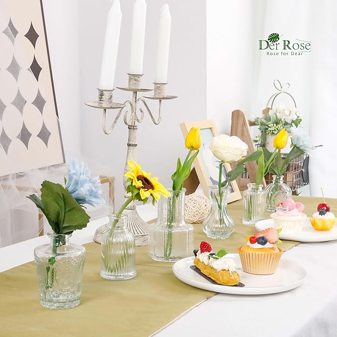 Der Rose Glass Bud Vases Set of 12, Small Bud Vases for Flowers, Rustic Wedding Centerpieces and Home Decor