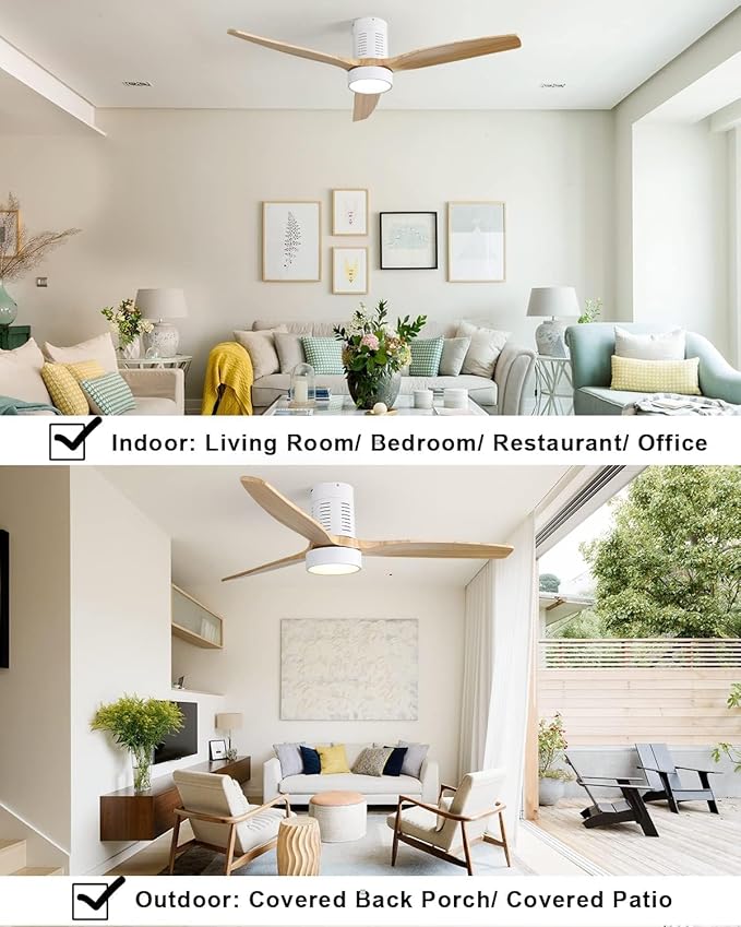 - Remote-Controlled Convenience: The 52 inch ceiling fan comes with a remote control, offering 6 wind speeds, timer adjustment, and reversible blade design for year-round comfort.