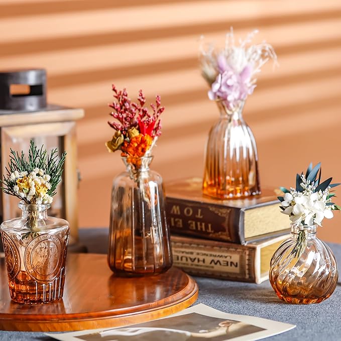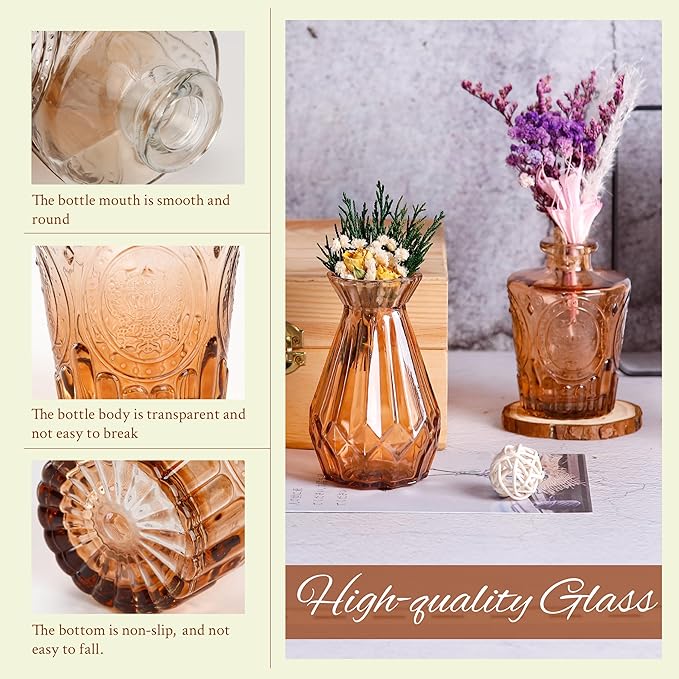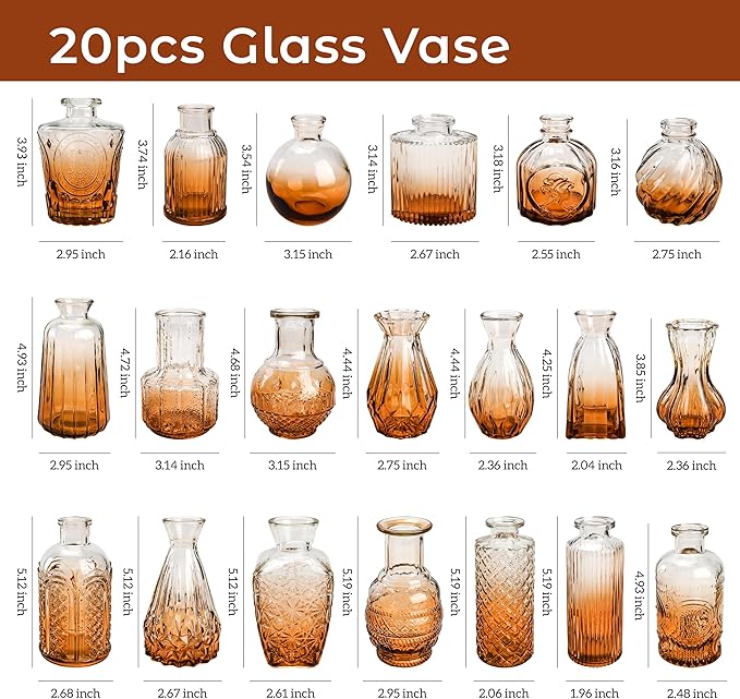 - Vintage Style: You will receive 20 amber glass bud vases. Each flower vase for centerpieces has different sizes and patterns, which can easily combine flowers or decorations according to your ideas