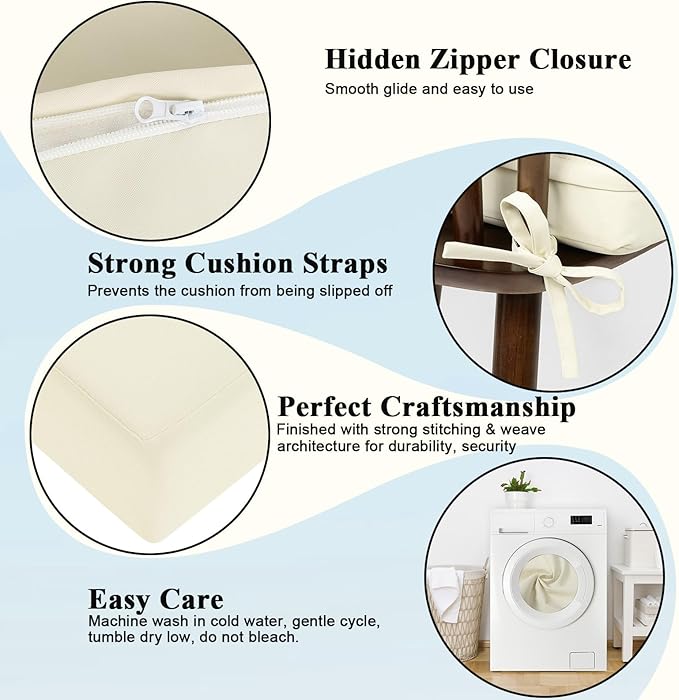 - EXQUISITE PRACTICAL DETAILS: There are two ties on each patio cushion, which can be easily secured to any chair to ensure that chair cushion does not move; The hidden zipper makes the cushion more beautiful, and it is easy to remove the cushion cover for cleaning