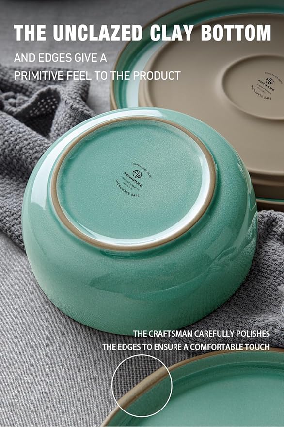 - 【Natural Material】Our bowls and plates set is crafted from natural stoneware, with glazes fired at 2340°F for 13.5 hours. The glazes are safe for food storage, ensuring you don't have to worry about any health issues. Tip, We have passed the anti-scratch test, so you can use it with peace of mind.