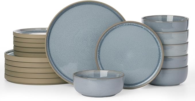 Famiware Nature Plates and Bowls Set, 18 Pieces Dinnerware Sets, Dishware Sets, Dishes Set for 6, Microwave and Dishwasher Safe, Light Blue