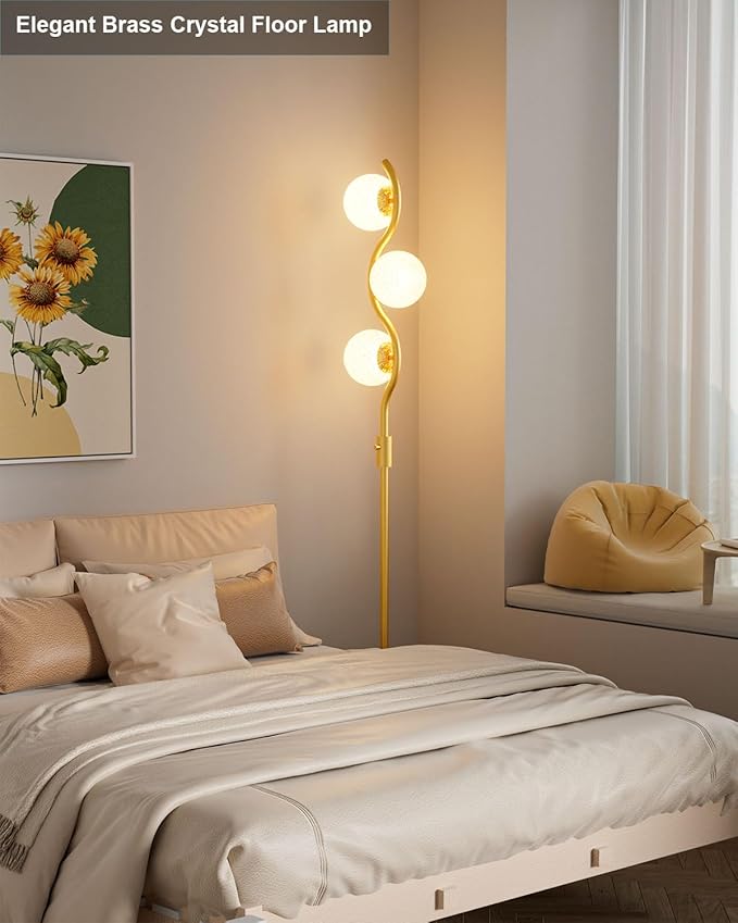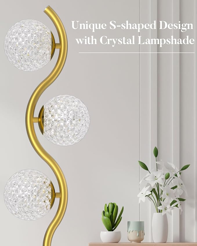 - Elegant Crystal Lampshade: The brass floor lamp features 3 crystal style lampshades made of acrylic to prevent dazzling lighting, which are more elegant and bright than frosted PC lampshades.
