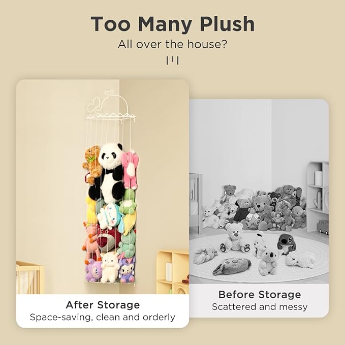 - 【Practical Plush Animal Room Decor】The stuffed animal storage is designed with style and functionality in mind, making the plush toys well-organized and cute when hung up. It is a beautiful room decoration. Perfect for nursery, preschool, playroom, bedroom, kids room, living room and small space.