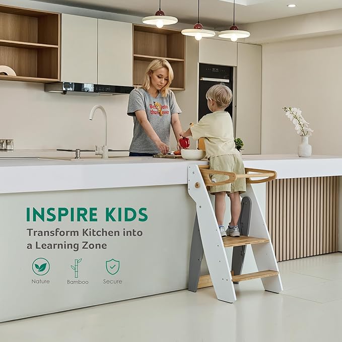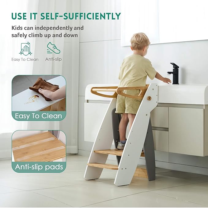 - 【Multipurpose Learning Tower】Not only transforms your kitchen into a fun learning space that fosters your child’s interest in cooking and baking but also makes it perfect for encouraging handwashing and teeth brushing in the bathroom. This versatility supports your child’s independence and accommodates their needs in various scenarios around the house, including serving as a convenient step stool for adults.
