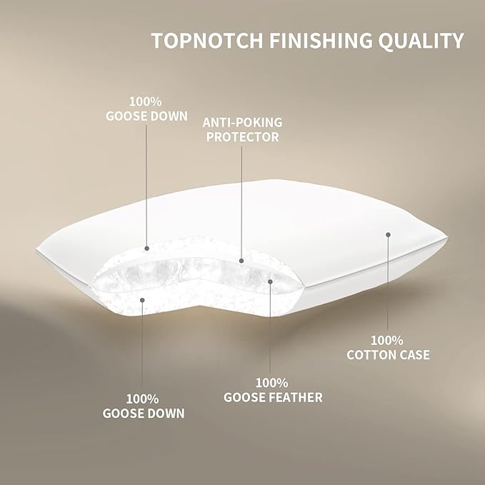 - EXCELLENT BREATHABILITY - The goose down pillow is filled with great goose down, which has breathability and moisture wicking properties, helping to keep it dry and comfortable. To provide you with a healthy user experience.