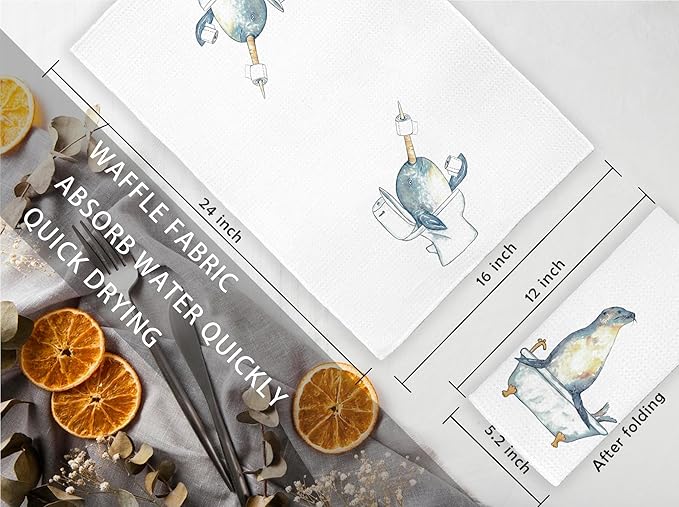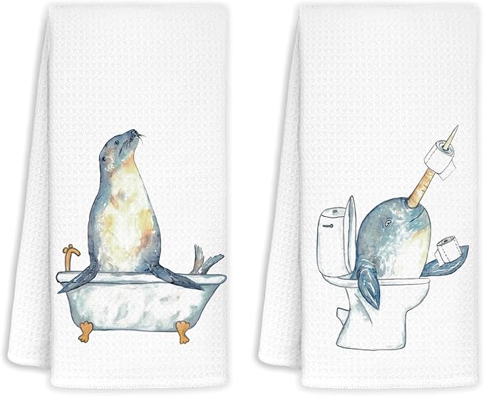 Funny narwhal sea Lion Bathroom Hand Towels Set of 2 - sea Lion Decorations, narwhal Decor, narwhal Gifts for Girls Kids Women Men, sea Lion Lovers Gifts, 16x24 in