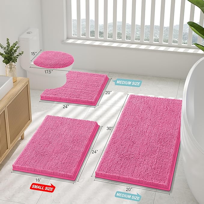 Smiry Luxury Chenille Bathroom Rugs 47x20, Extra Soft and Absorbent Shaggy Bath Mat, Machine Washable, Non-Slip Plush Carpet Runner for Tub, Shower, and Floor, Home Decor Accessories, Hot Pink