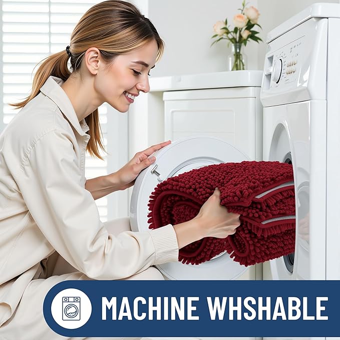 - [Easy to Clean & Care] Smiry bathroom rugs are effortlessly maintainable. Toss them in your washing machine and tumble dry on low for a hassle-free cleaning experience. The extra-soft microfiber material remains smooth, even after multiple washes.