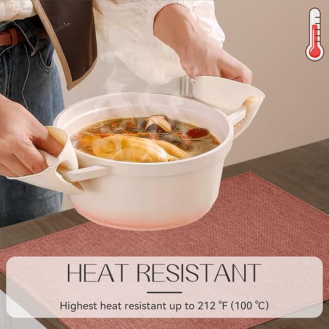 - THICKENED AND HEAT-RESISTANT: Our placemats feature a double-layered faux linen fabric which is heat-resistant up to 220°F (100°C) . They will prevent hot dishes, stains, and scratches from damaging your tables or furniture.