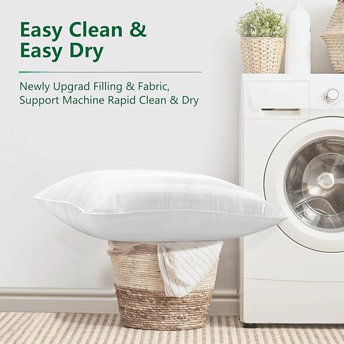 - Effortless Maintenance for Lasting Freshness - Our pillow collection marries luxury with convenience, featuring machine washable pillows that maintain their plush firmness wash after wash. Whether you prefer soft or firm pillows, our queen-sized pillow set guarantees enduring durability and freshness with minimal effort.