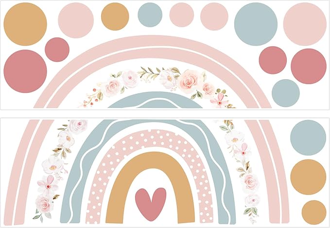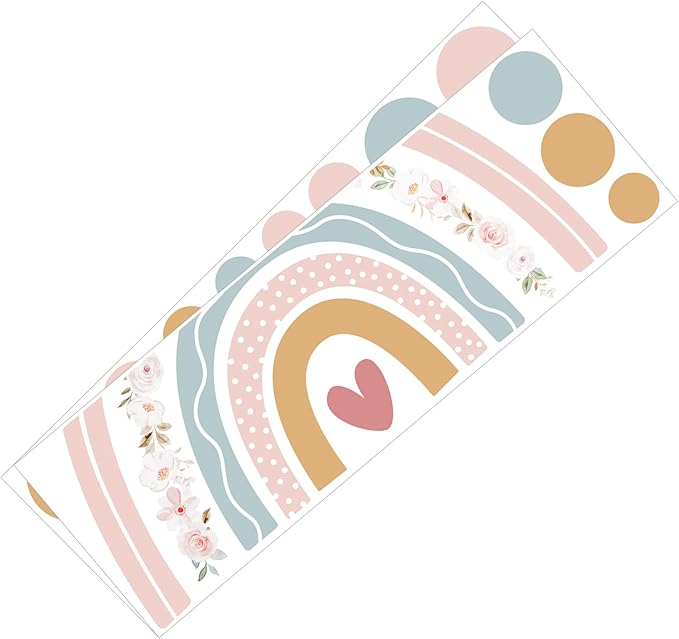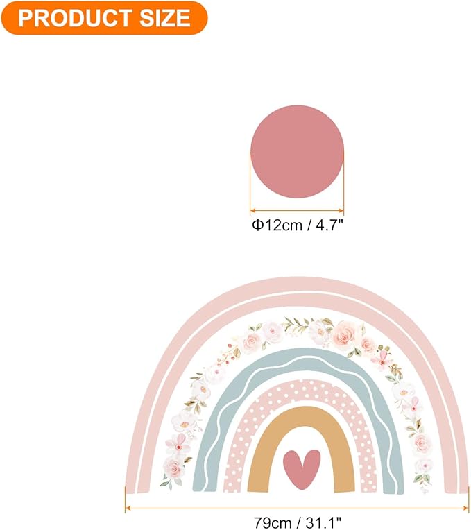 - Color: Multicolor; Material: PVC; Sticker Size: Rainbow: 66cm / 26inch(L x W), Mini Dot: 7cm / 2.8inch, Small Dots: 8cm / 3.1inch, Medium Dots: 10cm / 3.9 inch, Large Dots: 12cm / 4.7inch(Dia); Packing Content: 2 Sheet x Wall Sticker ( include 19 Pcs)