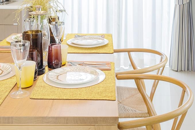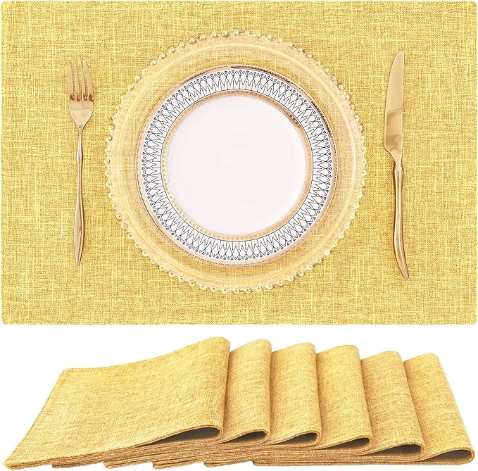 homing Mustard Yellow Cloth Placemats Set of 6 – Cotton Linen Blend Washable Farmhouse Dining Table Mats for Fall & Thanksgiving, Easy to Clean, 13 x 19 Inch