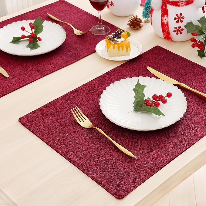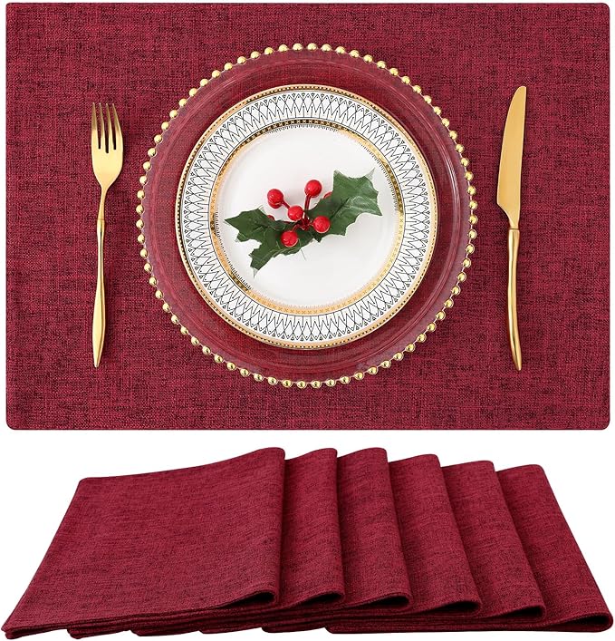 homing Red Cloth Placemats Set of 6 – Cotton Linen Blend Washable Farmhouse Dining Table Mats for Christmas, Easy to Clean, 13 x 19 Inch