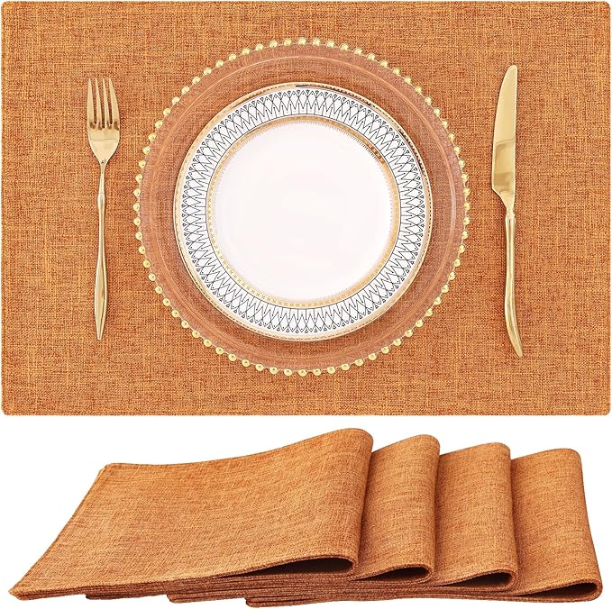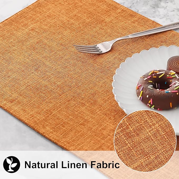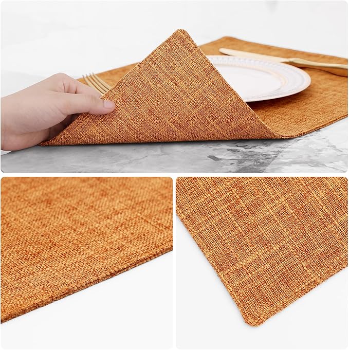homing Orange Cloth Placemats Set of 4 – Cotton Linen Blend Washable Farmhouse Dining Table Mats for Fall & Thanksgiving, Easy to Clean, 13 x 19 Inch