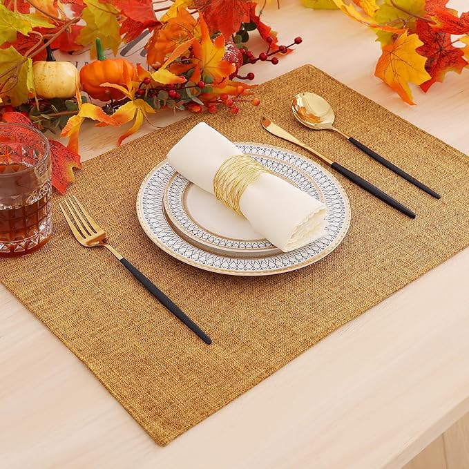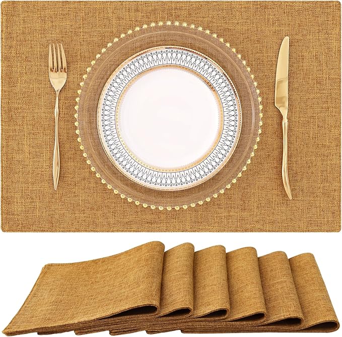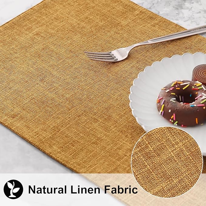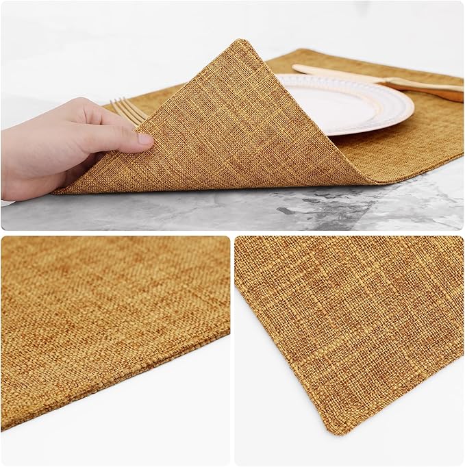 homing Amber Cloth Placemats Set of 6 – Cotton Linen Blend Washable Farmhouse Dining Table Mats for Fall & Thanksgiving, Easy to Clean, 13 x 19 Inch