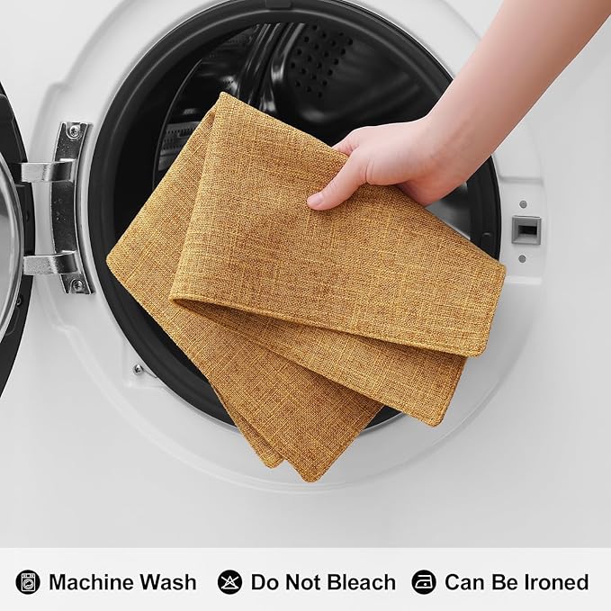 - [Thick & Sturdy] Linen fabric with solid texture makes them wear proof and heatproof, protecting your table from high-temperature burns and scratches from utensils