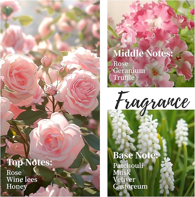 - Flower Scented Natural Essential Oil Diffuser: This fragrance is characterized by its rich floral intensity and complex layers of aroma. It blends notes of rose and honey to create a sweet, intoxicating fragrance. In the later stages, it evolves with musk as the base note, emitting warm, woody tones that enhance its lasting allure. ''Rose Rétro'' captures the timeless elegance of rose, enveloping your space in a velvety, sophisticated aroma that lingers with a lasting impression of floral opulence and subtle decadence.