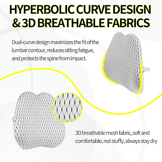 - 3D BREATHABLE MESH:The breathable design of the back support pillow for chair allows the body to move more comfortably.3D breathable mesh helps reduce heat buildup in the lumbar area and increases air circulation. Keeps you dry while you work and prevents discomfort from excessive perspiration. At the same time, staying dry helps prevent odors from developing.