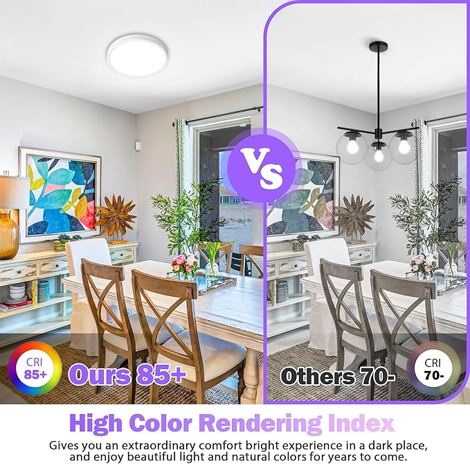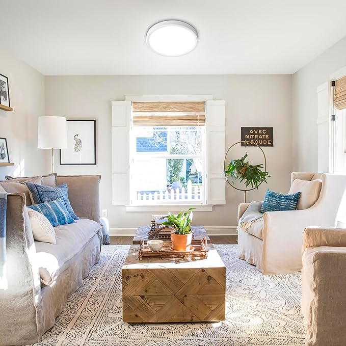 - High CRI & Long Lifespan: 20W round ceiling lighting emits 2000 lumens brightness with more than 85+ CRI (color rendering index), which gives you an extraordinary comfortable bright experience and vivid lighting effect in the dark place and enjoy beautiful light and natural colors. Under normal usage of 8 hours per day, lifespan could endure more than 3 years.