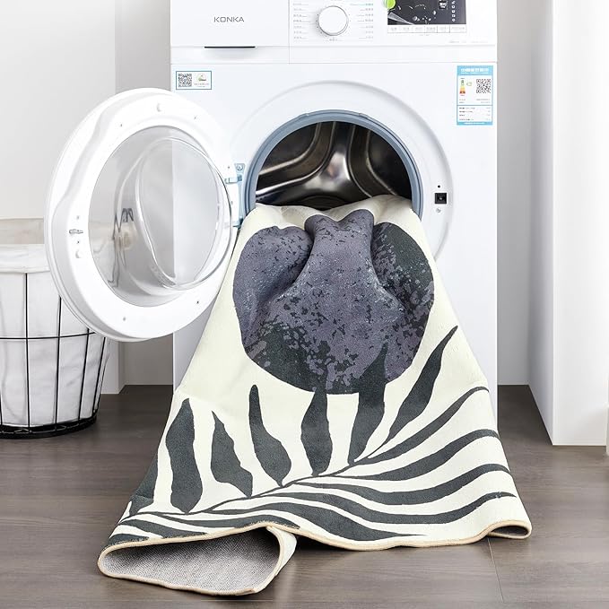 - [FUNCTIONAL 5x7 BLACK CARPET] -- Place a small rug in any place you need, made a perfect vintage kitchen rug, modern abstract living room rug, botanical dorm rug, contemporary office rug, aesthetic bedroom rug, mid century entryway rug, etc