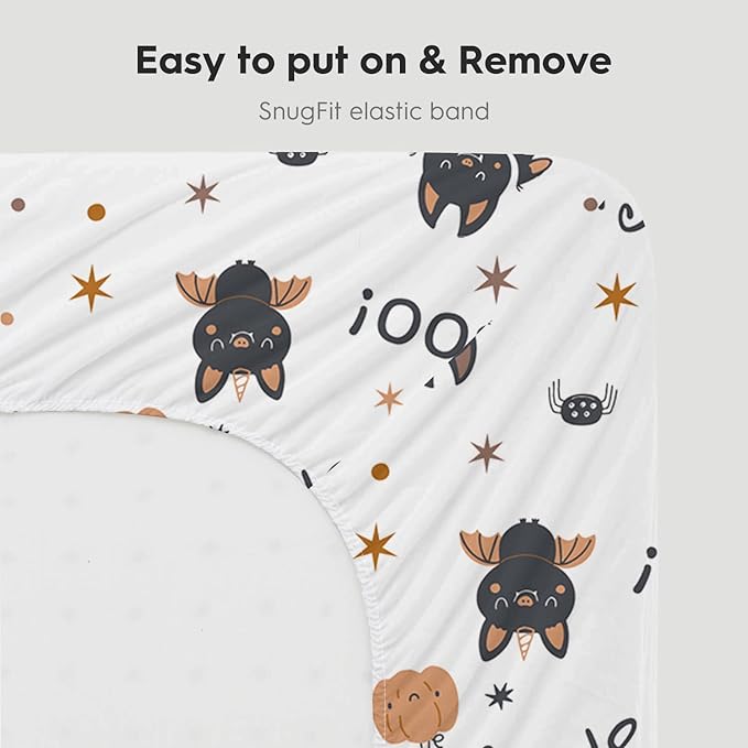 Horaldaily 2 Pack Fitted Crib Sheet for Boys Girls,Soft Breathable Washable Jersey Microfiber Baby Crib Sheet, Fits Standard Size Crib Mattress 28in x 52in, Bats Pumpkin Nursery Sheet Sage Black/White