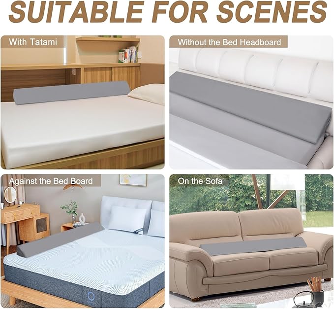 - Multi-fuction: Our bed headboard is good choice for beds with no headboard, hard wooden and Hollow iron art headboard. The wedge pillow gap filler can not only fill the gap of the mattress between headboard or wall keeps pillows from slipping , but also can be used with ordinary pillows to elevate the pillow height on the perfect angel for a great night's sleep.It can also be used in living room sofas to support back and waist for supporting.