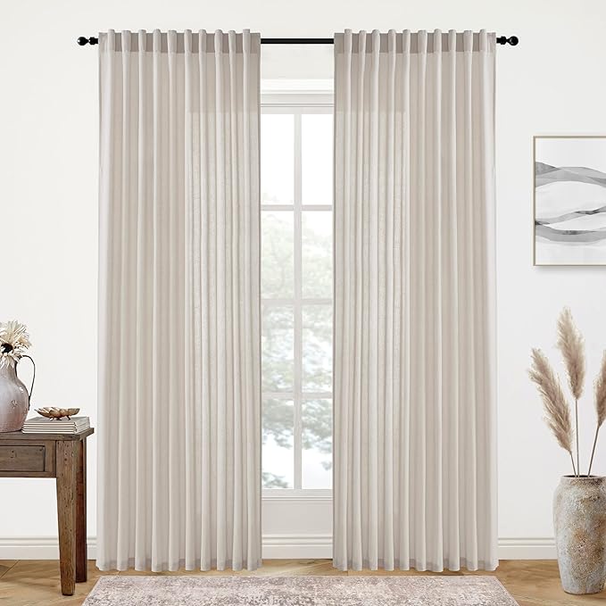 XTMYI 90 Inches Long Oatmeal Country Curtains for Living Room,Sheer Linen Shabby Chic Curtains for Bedroom 70 Inches Wide