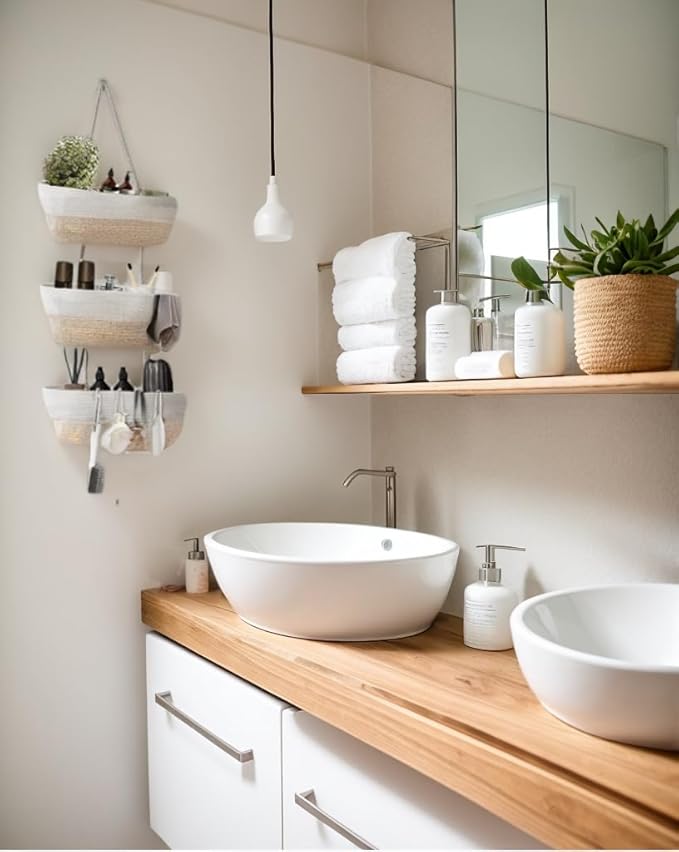 Hanging Baskets for Organizing,Bathroom Organizers and Storage,3-Tier Woven Cotton Wall-Mounted Storage Organizer Bag Decorative,Kitchen,Living Room,Bedroom,Nursery