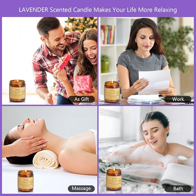 - Premium Soy Candle: The lavender candle is made 100% natural soy wax and cotton wick making it burns evenly and clean, and fresh fragrance. This lavender lemon scent candle has a fabulous fragrance that is relaxing without overpowering.