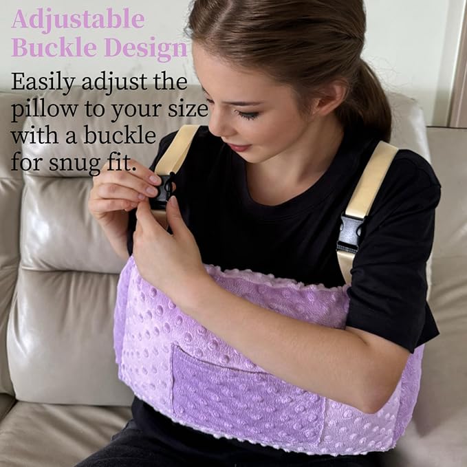 - 5.BREST SURGERY PILLOW WITH SHOULDER STRAP: The added shoulder strap allows the weight to fall on the shoulders rather than the chest or back. Size is adjustable to fit a wide range of body shapes for a more comfortable fit. Mastectomy gifts for women.