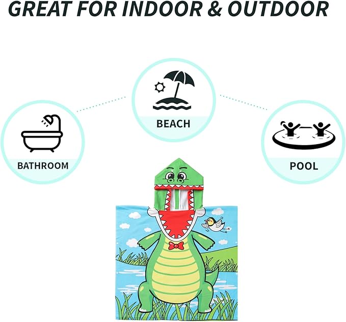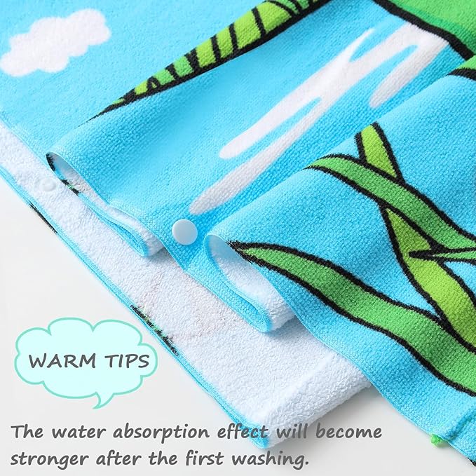 - MATERIAL: Toddler pool beach towel with hood is made of microfiber,this material is very soft, suitable for kid's young skin, friendly to people with sensitive. Hooded beach bath towel poncho have strang absorbent, better than regular towel.
