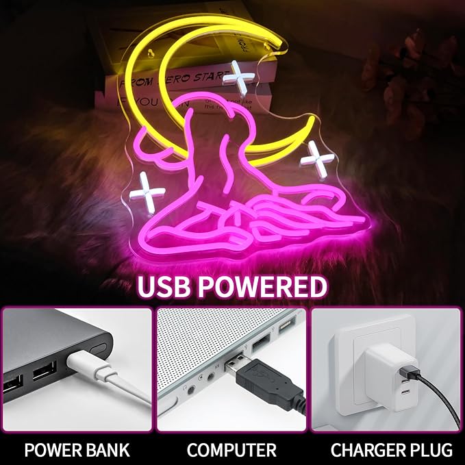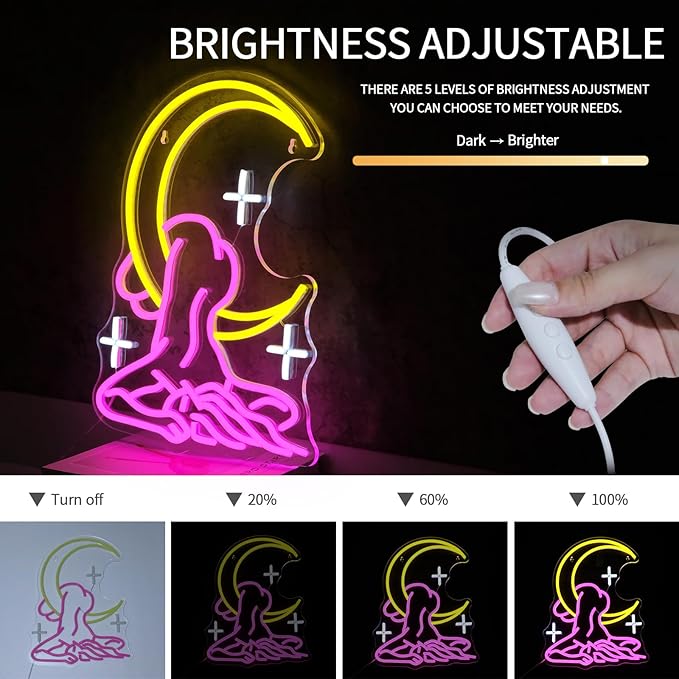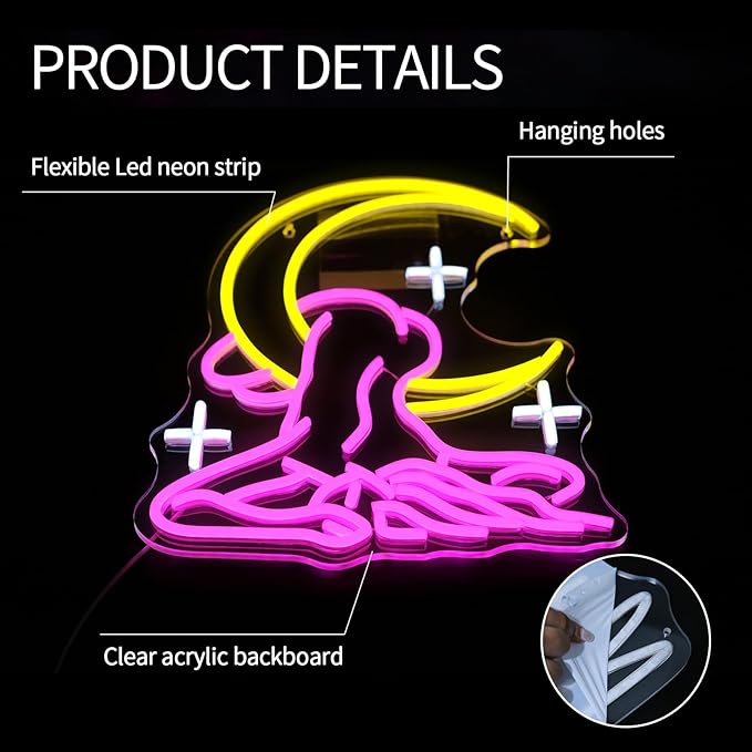 - Sexy and Innovative Room Decoration: The lady neon sign displays a scene of a beautiful woman lying on the moon. The sophisticated and elegant lady LED sign is perfect for adding a romantic ambience that will mesmerize you