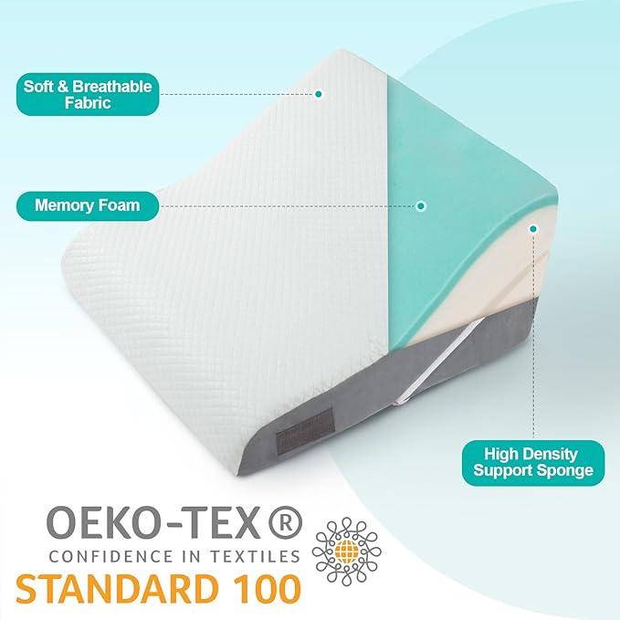 - MEMORY FOAM COMBINED WITH HIGH-DENSITY SPONGE: The wedge pillow adopts a combination of memory foam and high-density sponge, which can not only fit your body curves, provide excellent comfort and pressure relief, but also maintain sufficient support to prevent collapse.
