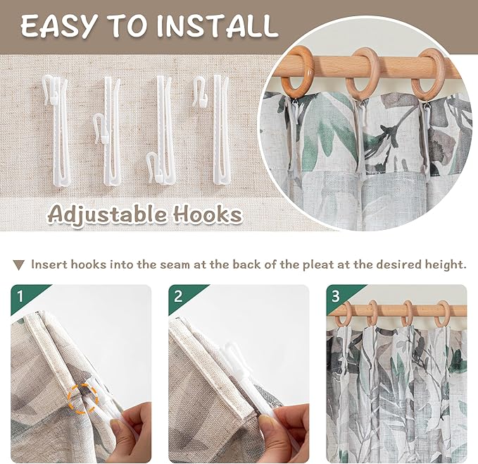 - MULTIPLE CHOICE:Each package includes 2 panels of pinch pleated curtain with 18 hooks(without rings),measuring 40"Wx63"L each panel.