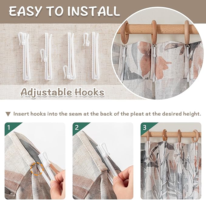 - MULTIPLE CHOICE:Each package includes 2 panels of pinch pleated curtain with 18 hooks(without rings),measuring 40"Wx95"L each panel.