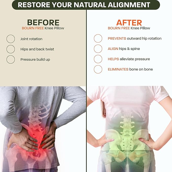 - Pain Relief Support: Experience targeted pain relief with our knee pillow, carefully designed to provide comfort and relief from sciatica, back pain, and hip discomfort. Tailored as a pillow between knees for side sleepers, this pillow for hips and knees also provides support to alleviate discomfort, promoting a more restorative sleep