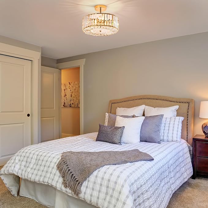 - Versatile Placement: Measuring 15" wide and 10.2" high, this semi-flush mount crystal ceiling light fixture is perfectly proportioned to fit seamlessly into any space, from porches and hallways to entryways, balconies, living rooms, and bedrooms