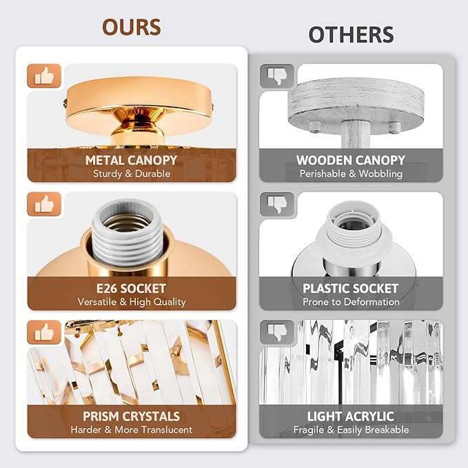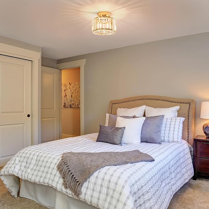 - Versatile Placement: Measuring 9.3" wide and 11.5" tall, this semi-flush mount crystal ceiling light fixture is perfectly proportioned to fit seamlessly into any space, from porches and hallways to entryways, balconies, living rooms, and bedrooms