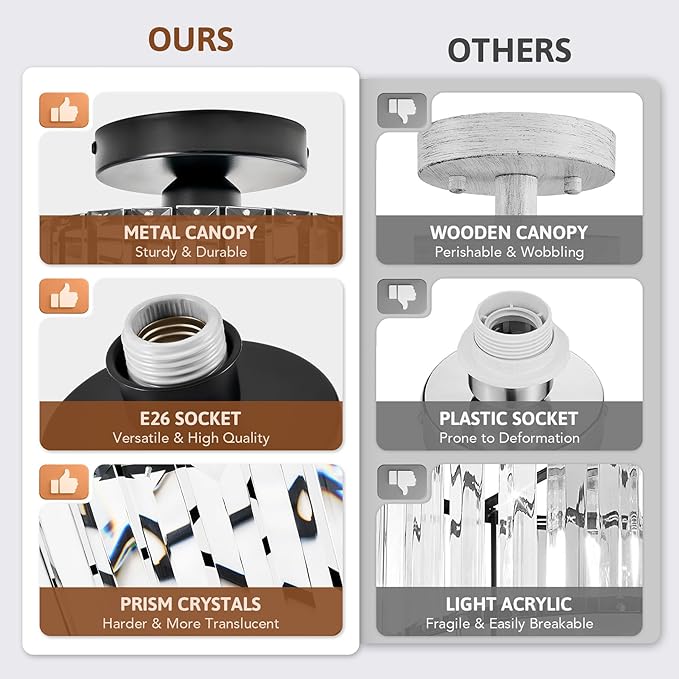 - Versatile Placement: Measuring 9.3" wide and 11.5" tall, this semi-flush mount crystal ceiling light fixture is perfectly proportioned to fit seamlessly into any space, from porches and hallways to entryways, balconies, living rooms, and bedrooms