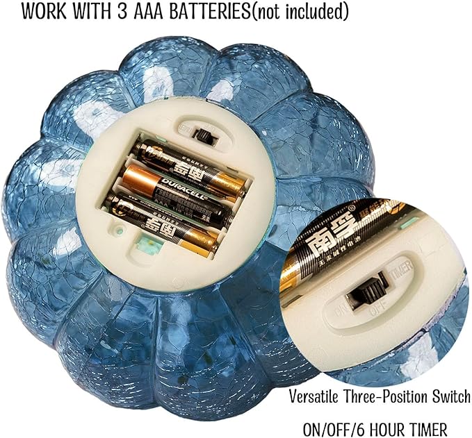 Indigo Blue Crackle Glass Pumpkin Twinkling Light with Timer- Fall Decoration for Home-Lamps for Festive Decoration-Halloween Decorations