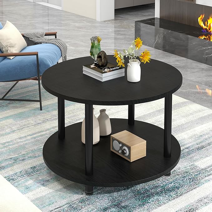 - 【2-Tier Coffee Table】This round coffee tables are exquisite and compact. The rustic round table comes with 2 tier tabletop, Both tabletop sizes are the same tabletop are 23.6". Which provides extra spacious space to store items and makes your room tidy and comfortable.
