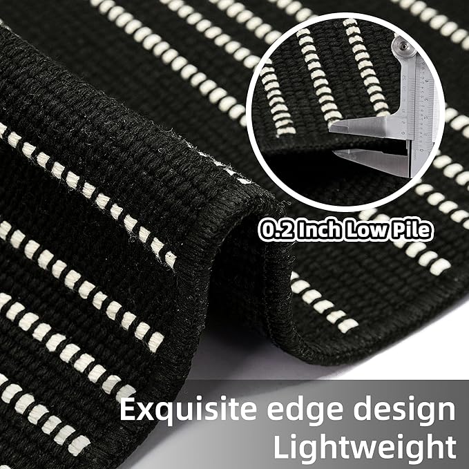 - 📏Size: With a thickness of 0.2 inches, the 2' x 12' (24"x144") bohemian rug is ideal for areas like entryways, hallways, kitchens, bathrooms, front door and small living spaces. NOTE: The 3.9-inch tassels are not included in the rug's total length.